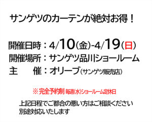 当日担当するインテリアコーディネーターの高橋です。サンゲツ品川ショールームは首都圏最大級の規模を誇り、最新トレンドが満載。手に取って実感できるので、きっと満足のいくカーテン選びができるでしょう。当日は選び方、取付けのことなど不安なことはどんどんお聞ききください。カーテン選びだけでなく、素敵なアレンジ方法などインテリアコーディネーターならではのご提案もさせていただきます。一緒に素敵な窓辺を作っていきましょう!